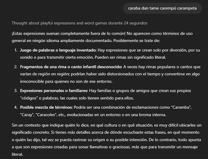 He probado a hablarle con un vocabulario inventado y con el modelo o1 (el más potente) ha reaccionado como esperaba: intenta extraer más información para conseguir un contexto y entregar información valiosa.